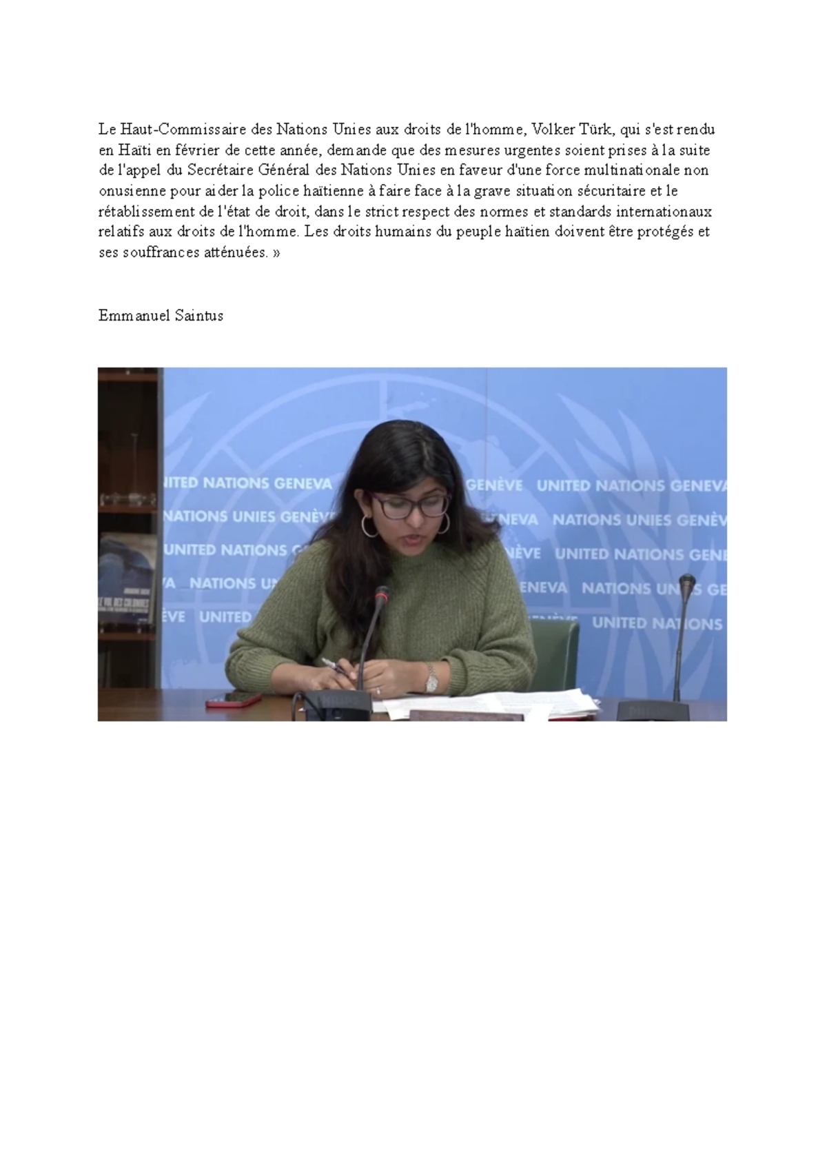 l’homme. Les droits humains du peuple haïtien doivent être protégés et ses souffrances atténuées.»